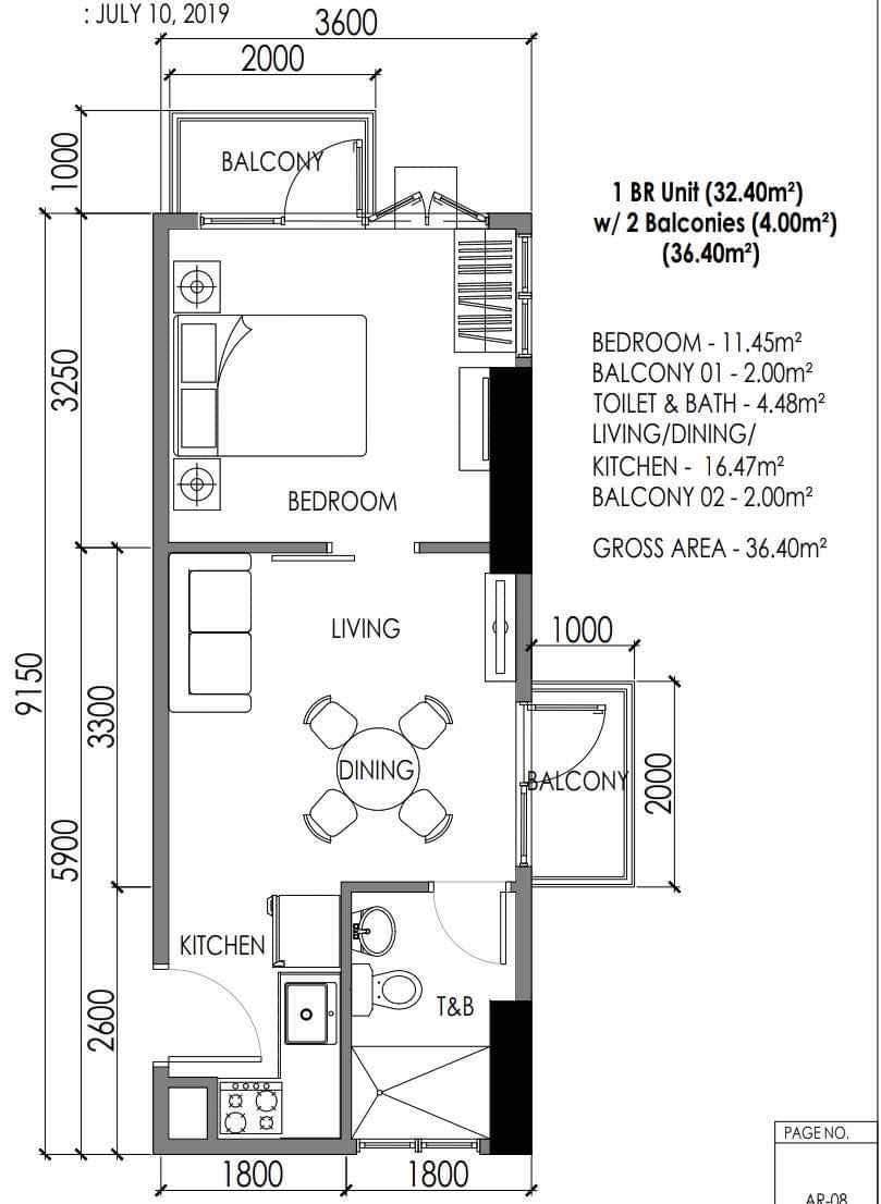 - 36.4 SQM – 1 Bedroom Condo